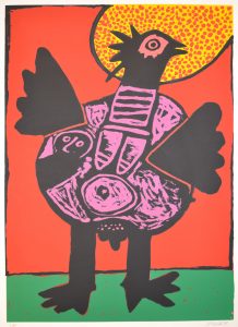 CORNEILLE (C. van Beverloo, dit). "Oiseau Kivu" (1991). Lithographie originale en couleurs tirée sur vélin d'Arches, just. 3/80, datée et signée au crayon. Dim. support : 118 x 79 cm ; sujet : 72 x 98 cm.