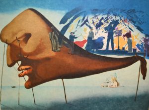 DALI (Salvador). Sans titre. Lithographie d'interprétation en couleurs tirée sur Japon nacré, just. 273/300 et signée au crayon (signature apocryphe). Dim. support : 53,5 x 75,5 cm ; sujet : 42 x 58 cm (pli angulaire au coin infér. droit).