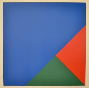 DELAHAUT (Jo). "Compositions 677" (1970). Sérigraphie en 3 couleurs (carré sur pointe) tirée sur papier couché, titrée, just. 14/20, datée et signée au crayon. Dim. support : 50 x 50 cm ; sujet : 42 x 42 cm.