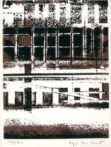 DUDANT (Roger). Sans titre. Petite lithographie originale en couleurs tirée sur papier vélin, just. 299/300 et signée au crayon. Dim. support et sujet : 20 x 15 cm.