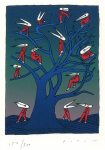 FOLON (Jean-Michel). "Foule". Petite sérigraphie originale en couleurs tirée sur papier vélin, just. 150/300 et signée au crayon. Dim. support : 19,5 x 14 cm ; sujet : 14 x 10 cm.