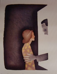 FOLON (Jean-Michel). "La Rose pourpre du Caire" (1985). Planche en quadrichromie (plastifiée) réalisée pour le film de Woody Allen, avec dans la partie supérieure, l'affiche sans la lettre et dans la partie inférieure, l'affiche avec la lettre....