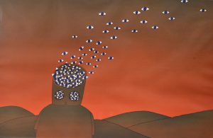 FOLON (Jean-Michel). Sans titre. Planche en quadrichromie tirée sur papier d'édition, signée dans la planche et montée sous cadre en alu. Dim. cadre : 60 x 90 cm ; support et sujet : 59 x 88 cm.