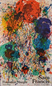 FRANCIS (Sam). Affiche (1983). Lithographie originale en couleurs éditée pour son exposition personnelle à la Fondation Maeght à Saint-Paul. P., Impr. Arte, 1973, dim. : 98,5 x 53 cm.