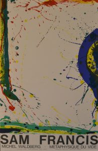 FRANCIS (Sam). Affiche (1986). Lithographie originale en couleurs tirée par Desjobert à l'occasion de la parution du portfolio "Poèmes dans le ciel" avec Michel Waldberg. P., Delille, 1986, dim. : 84 x 56 cm.