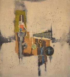 FRIEDLAENDER (Johnny). Sans titre. Eau-forte et aquatinte originale en couleurs tirée sur vélin de Rives, just. 63/95 et signée au crayon. Dim. support : 76 x 57 cm ; sujet : 49,5 x 45,5 cm (papier oxydé, décharge de passe-partout).