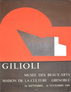 GILIOLI (Emile). Affiche signée (1969). Lithographie en couleurs éditée pour son exposition personnelle au Musée des Beaux-Arts de Grenoble. Affiche signée à l'encre noire. Issoudun, Litho-Pons, 1969, dim. : 65 x 50 cm (papier défraîchi,...