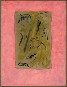 GUIETTE (René). Sans titre (1961). Encre sur papier, datée, signée au crayon et montée sous passe-partout bordé et cadre noir en bois. Dim. cadre : 45 x 34 cm ; sujet : 17,5 x 11 cm.