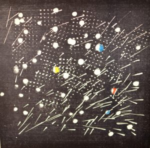 HARTUNG (Hans). "Feu d'artifice" (1973). Xylographie et pochoir tirée sur vélin de Rives, just. 79/100, signée au crayon et montée sous cadre en bois. Timbre à sec d'éditeur. St. Gallen, Erker Presse, (1973), dim. cadre : 68 x 53 cm ; sujet :...