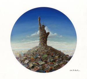 HECKMANN (Philipp). "His Part of America". Impression en couleurs tirée sur vélin blanc, d'après un collage original, just. E.A. et signée à l'encre noire. Dim. support : 35 x 30,5 cm ; sujet : 22 cm de diamètre.