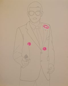 KEGUENNE (Jack). "Autoportrait" (1985). Encre de Chine rehaussée sur papier cartonné. Dim. support et sujet : 60 x 50 cm. Rare composition figurative de Jack Keguenne (Waremme, °1957)