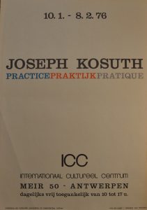 KOSUTH (Joseph). Affiche (1976). Typographie en 4 couleurs tirée sur fin papier brun pour son exposition personnelle à l'ICC à Anvers. Dim. : 58 x 42 cm./ IDEM. "Préface". Texte typographique en bleu et gris édité par le Centre d'Art...
