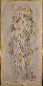 LAPOUJADE (Robert). Sans titre (1956). Huile sur toile, datée, signée au coin infér. gauche, montée sur châssis et cadre doré en bois. Etiquette de la Galerie Arnoux (Paris) au verso. Dim. cadre : 92,5 x 46 cm ; support et sujet : 90 x 44 cm.