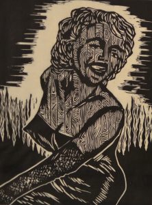 LENOIR (Thierry). "Gueules de bois et têtes brûlées : Marilyn pointe" (2002). Gravure originale sur bois, titrée, just. 2/12, datée, signée au crayon et montée sous cadre en bois naturel. Dim. cadre : 69 x 63,5 cm ; sujet : 44 x 32 cm. Thierry...
