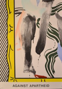 LICHTENSTEIN (Roy). "Against Apartheid" (1983). Affiche en litho-offset réalisée en coopération avec le Comité spécial des Nations unies contre l'Apartheid. Dim. : 82 x 60 cm (Corlett, III.32).