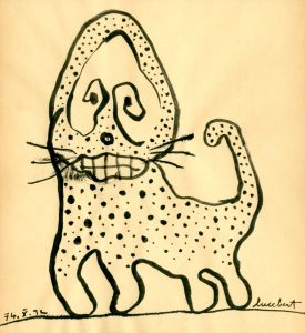 LUCEBERT (Lubertus Swaanswijk, dit). Sans titre (1974). Encre de Chine sur papier, datée, signée au coin infér. droit et montée sous passe-partout et cadre en bois. Dim. cadre : 37,5 x 36,5 cm ; sujet : 23 x 21 cm.