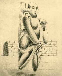 MAMBOUR (Auguste). Sans titre (ca 1926). Eau-forte originale en noir tirée sur papier vélin, signée au crayon et montée sous passe-partout crème et cadre noir et argenté en bois. Dim. cadre : 62 x 53 cm ; support : 33 x 25 cm ; sujet : 24 x 21...