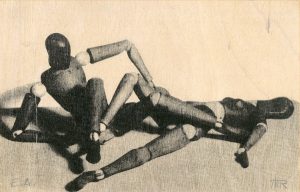MAN RAY. "Mr and Mrs Woodman" (1973). Sérigraphie en noir tirée sur bois, d'après une photographie originale, just. E.A. et monogrammée au crayon. Dim. support : 13,5 x 21,5 cm ; sujet : 12 x 18,5 cm.