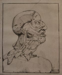 MANDELBAUM (Stéphane). "Ecorché II" (1979). Pointe sèche en noir tirée sur papier vélin, just. 12/20 au crayon et tamponnée du timbre à sec de la Fondation Stéphane Mandelbaum. Tirage de 1987. Dim. support : 75 x 52 cm ; sujet : 24,4 x 20,8...
