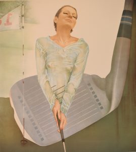 MARA (Pol). "La Joueuse de golf". Lithographie en couleurs tirée sur vélin d'Arches, just. 74/250 et signée au crayon. Dim. support : 75 x 63 cm ; sujet : 52 x 37 cm.