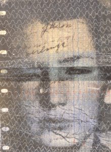 MARIE-ANGE. "Portrait". Gravure remaniée reproduite sur film transparent, doublée d'une planche imprimée et surpiquée de points brodés. Dim. support et sujet : 50 x 34,5 cm./ DE VREE (Frans). "Stokpaard" (2000). Impression en noir tirée sur...