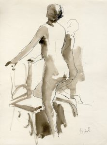 MELS (René). "Nus féminins". Ensemble de 3 dessins à l'encre de Chine et lavis sur papier, tous signés. Dim. support et sujet : (3 x) +/- 35 x 26 cm.