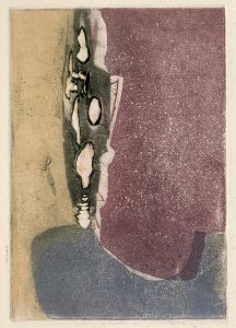 carborundum tirée sur vélin d'Arches, signée au crayon sous le champ. Dim. support : 16,5 x 24,5 cm ; sujet : 7 x 13 cm (mouill. à la marge droite)./ Ens. 2 pièces.