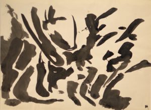 MELS (René). Sans titre [Composition en noir]. Lavis sur papier, monogrammé au coin infér. droit et monté sous passe-partout (sans fond). Dim. passe-partout : 44 x 55 cm ; sujet : 30 x 40 cm.