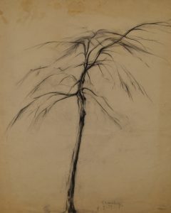 MENDELSON (Marc). "Arbre" (1939). Crayon gras sur papier, daté, signé au coin infér. droit et monté sous passe-partout blanc et cadre en bois naturel. Dim. cadre : 78 x 63 cm ; sujet : 55 x 45 cm (mouill. claire au bord supér.).