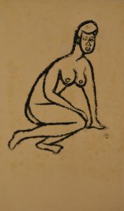 MENDELSON (Marc). "Nu assis" (1948). Encre de Chine et cire sur papier, datée, monogrammée dans la partie médiane et montée sous passe-partout blanc et cadre en bois naturel. Dessin daté au verso. Dim. cadre : 78 x 63 cm ; sujet : 32 x 24 cm...