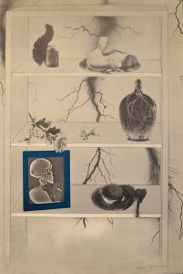 OPPENHEIM (Meret). Sans titre. Planche en quadrichromie tirée sur papier glacé, just. 53/100 et signée au stylobille. Dim. support et sujet : 90 x 60 cm (petit manque angulaire).