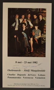 PANAMARENKO. Affiche (1982). Exposition collective de Charlier, Dujourie, Jef Geys, Lohaus, Panamarenko, Vercruysse et Vermeiren à l'abbaye de Maagdendale à Audenarde. Planche en quadrichromie, just. 24/50 et signée à l'encre par les 7 artistes....