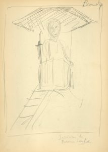PERMEKE (Constant). Sans titre [Chaire de vérité]. Crayon sur papier, signé "Permeke" au coin supér. droit et monté sous passe-partout crème et cadre en bois naturel. Croquis annoté au coin infér. droit : "Intérieur chez Baronne Lambert"....