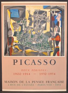 PICASSO (Pablo). Affiche (1954). Lithographie en couleurs pour son exposition intitulée "Picasso / Deux périodes / 1900-1914 - 1950-1954" à la Maison de la Pensée française à Paris. P., Impr. Mourlot, 1954, dim. : 71,5 x 52 cm (Czwiklitzer, 81).