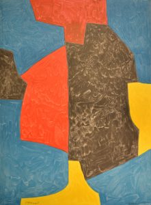 POLIAKOFF (Serge). "Composition en rouge, bleu et jaune" (1975). Lithographie d'interprétation en couleurs tirée par Charles Sorlier sur papier d'édition. P., Impr. Mourlot, 1975, dim. support : 101,5 x 70,5 cm ; sujet : 87 x 64 cm.