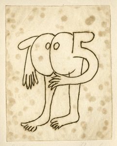 REINHOUD (Reinhoud d'Haese, dit). Sans titre (1995). Gravure originale tirée sur vergé crème, just. 3/25 et signée au crayon. Carte de voeux pour 1995. Dim. support : 21 x 16 cm ; sujet : 17 x 13 cm.