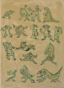 REINHOUD (Reinhoud d'Haese, dit). Sans titre [Personnages]. Lithographie originale en couleurs tirée sur vélin d'Arches, just. 164/300 et signée au crayon. Dim. support : 66 x 48 cm ; sujet : 53 x 38 cm.