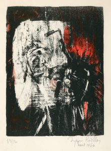 RODILLON (Suzanne). Sans titre (Noël 1960). Lithographie originale en couleurs tirée sur vélin de Rives, just. 83/120, datée et signée au crayon. P., Galerie Claude Bernard, 1960, dim. support : 32,5 x 25 cm ; sujet : 22 x 16,5 cm (pâles...