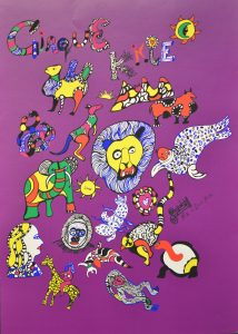 SAINT-PHALLE (Niki de). "Cirque Knie". Sérigraphie en couleurs tirée sur papier couché, titrée et signée dans la planche. Dim. support et sujet : 70 x 50 cm (coin infér. droit lég. écrasé).