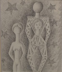 SIMON (Armand). Sans titre (1972). Encre de Chine à la plume et repères à la mine de plomb. Dessin sur papier, daté, monogrammé au coin infér. gauche et monté sous passe-partout crème et cadre doré en bois. Dim. cadre : 54 x 46 cm ; sujet :...