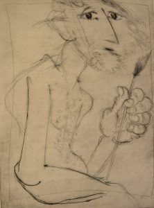 SOMVILLE (Roger). "Un peintre" (1973). Eau-forte originale en noir tirée sur vélin d'Arches, titrée, just. 5/30, datée et signée au crayon. Dim. support : 91 x 63 cm ; sujet : 75,5 x 56,5 cm.