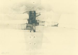 SPRUMONT (André). Sans titre (1974). Crayon gras sur papier, daté, signé au coin infér. gauche et monté sous passe-partout et cadre en alu. Dim. cadre : 40,5 x 49,5 cm ; sujet : 25 x 34 cm (légères rouss. éparses). On joint l'ouvrage sur...