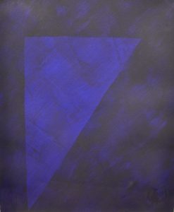 SWIMBERGHE (Gilbert). Sans titre (1990). Huile sur papier, datée, signée, dédicacée au crayon et montée sous cadre bleu en alu. Dim. cadre : 101 x 71 cm ; support et sujet : 76 x 56 cm.