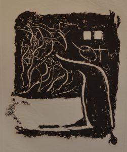 TAPIES (Antoni). "Aparicions 9" (1982). Gravure originale au carborundum tirée sur vélin de Guarro, just. IV/IX, signée au crayon et montée sous caisson noir et doré en bois. Dim. cadre : 96 x 77 cm ; support : 76 x 56 cm ; sujet :49 x 37 cm.