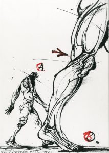 VELICKOVIC (Vladimir). "Figures d'un récit en mouvement" (1985). Suite de 5 lithographies en 2 tons tirées sur papier vélin, just. 9/100, datées et signées au crayon. Brux., Triangl, 1985, dim. support et sujet : (2 x) 29,5 x 42 cm et (3 x) 30 x...
