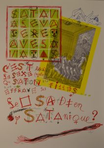 VILLEGLE (Jacques Mahé de la Villeglé, dit Jacques). "Le Carré sadien satanique" (1997). Sérigraphie en couleurs tirée sur papier fort, just. 38/80 et signée au crayon. Dim. support et sujet : 98 x 70 cm.