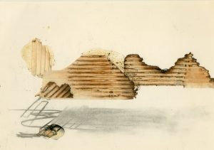 WILLEQUET (André). Sans titre. Collage et crayon gras sur papier, monté sous passe-partout blanc et cadre en bois naturel. Dim. cadre : 35 x 43 cm ; sujet : 21 x 29 cm.
