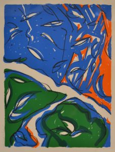 WYCKAERT (Maurice). Sans titre. Lithographie originale en 4 couleurs tirée sur vélin blanc, signée au crayon et montée sous passe-partout crème et cadre en bois naturel. Dim. cadre : 59,5 x 71,5 cm ; sujet : 36,5 x 49 cm.