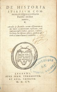 FUCHS (Leonhart).{CR}De historia stirpium commentarii insignes.{CR}Lyon : Jean de Tournes, Guillaume Gazeau, 1555. — In-16, (24 ff.), 979 pp., (6 ff.). Vélin rigide, dos lisse, tranches rouges (reliure du XVIIe siècle).{CR}Exemplaire de choix...