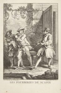 « Le chef-d’œuvre de Boucher comme illustrations : c’est l’un des plus beaux livres de la première partie du XVIIIe siècle » (Cohen).{CR}Cette édition est illustrée d’un portrait de Molière gravé par Lépicte d’après Coypel, de plus de 300 vignettes, lettrines et culs-de-lampe par Boucher, Blondel et Oppenord, dont plusieurs répétés, et de 33 planches gravées par Laurent Cars d’après Boucher.{CR}Exemplaire de premier tirage avec la faute « comteesse » au volume 6 page 360, en reliure anglaise du XIXe siècle et provenant de la bibliothèque de l’historien Sir Henry Edward Bunbury (1778-1860), 7e baronet, second fils du célèbre caricaturiste anglais Henry William Bunbury (1750-1811). Il avait épousé en première noce Louisa Émilie, fille du général Fox en 1807 puis en seconde noce Émily Louisa Augusta, fille du colonel George Napier en 1830. Il avait formé une importante bibliothèque qui fut dispersée par Sotheby’s en décembre 1894, juillet 1896, février 1916 et avril 1932.{CR}Dans la lignée de cette prestigieuse famille figurait Lydia Bunbury (1798-1862) qui épousa Alfred de Vigny en 1825.{CR}Reliures modestes et restaurées. Charnières refaites, coins émoussés. Frottements d’usage. Rousseurs et quelques feuillets brunis.{CR}Provenance : Henry Edward Bunbury, avec ex-libris portant ses armes accolées à celles de sa seconde épouse Émily Louisa Augusta Napier, et pièce d’armes sur le dos représentant une tête de léopard devant deux épées en sautoir. - Ex-libris au chiffre FAR (XIXe siècle).